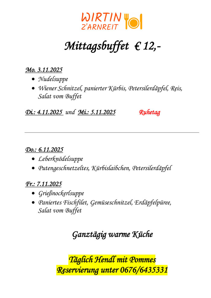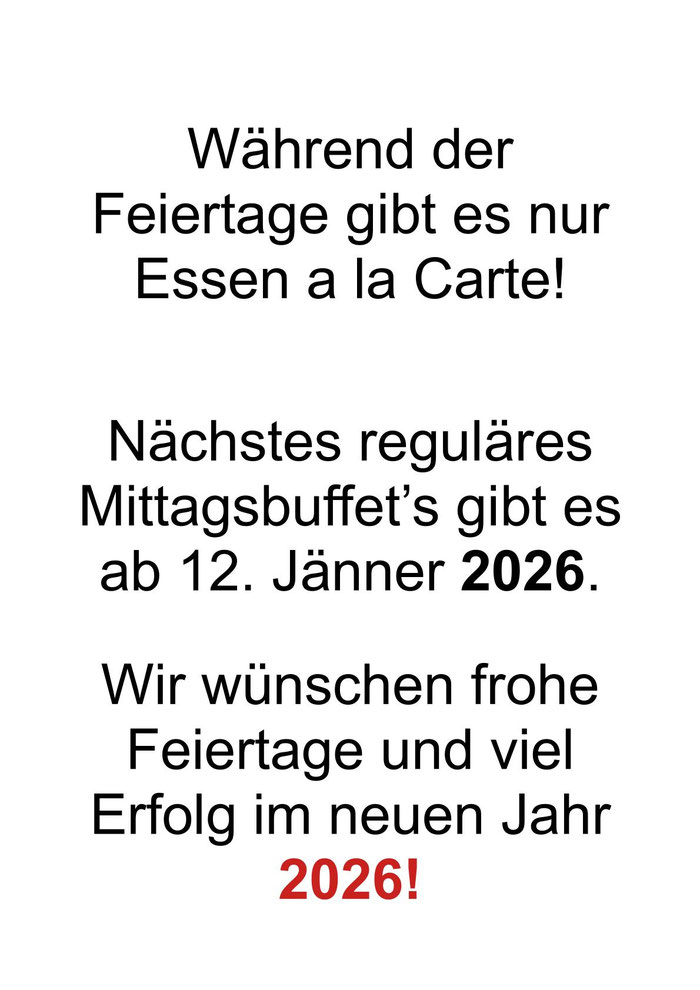 Natürlich stehen wir auch zu anderen Zeiten jederzeit gerne zur Verfügung. Bitte telefonisch anfragen. (zB Reisebusse, Begräbnisse usw.)